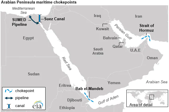 A “chokepoint” is a narrow geographical feature that, if closed or threatened, can halt global trade. The Bab el-Mandab is arguably the most sensitive after the Strait of Hormuz.